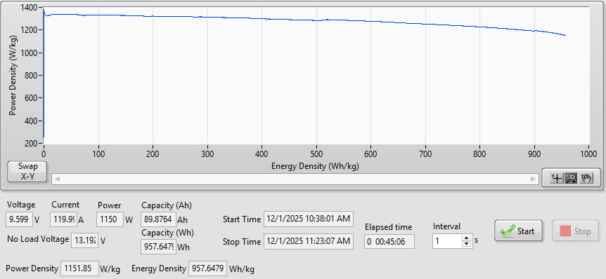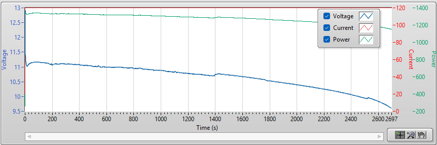 120A to 9.60V | Duration 00:45:06 2697s 89Ah 957Wh |