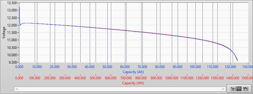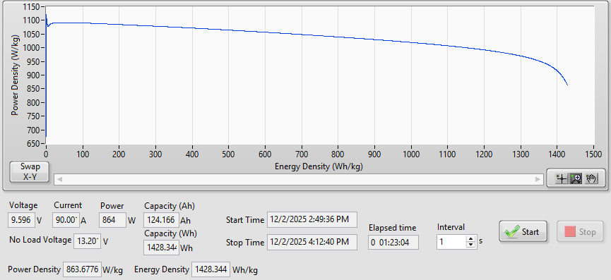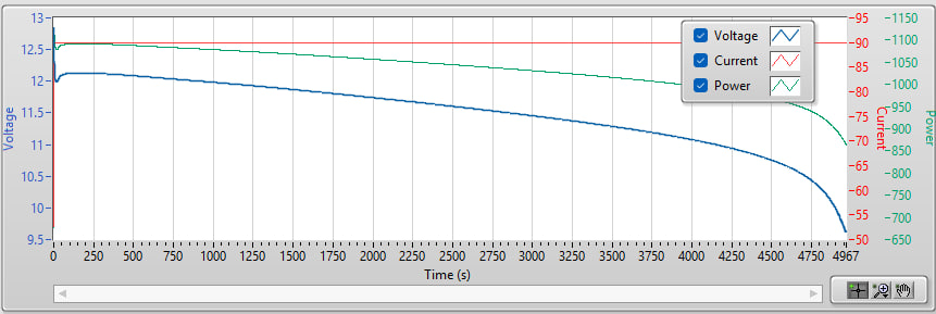90A to 9.60V | Duration 01:23:04 4967s 124Ah 1428Wh |
