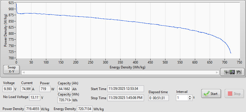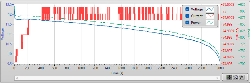 75A to 9.60V | Duration 00:51:31 3080s 64Ah 720Wh |